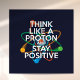 Pense como um próton e continue como um poster positivo. Uma design moderna e divertida inspirada pela ciência. Ficar positivo nunca é fácil a menos que você pense como um próton e então você sempre ficará positivo. Agora compartilha as boas notícias decorando a sua sala de aula ou escritório, ajudando a inspirar estudantes e colegas. Projetado por Thisnotme©