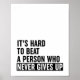 É Duro bater em uma pessoa que nunca desiste de uma citação motivacional de Malhação branca e preto dizendo tipografia *Personalizá-la! Escolha a sua própria Cor de Fundo Impressa!