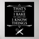 É o que faço, Assar e sei de coisas. Esta citação engraçada de cozinhar é um presente de excelente para um homem, mulher, adolescente e criança que adoram assar na cozinha. Também perfeito para um padeiro ou um trabalhador de padaria. Se você é um padeiro doméstico, ama as artes culinárias, e adora preparar um pão delicioso, muffins, bolos ou cupcakes no forno, então esse design humorístico é para você.