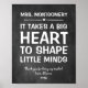 O presente perfeito para um professor! Esta poster apresenta a citação: "É preciso um grande coração para moldar as mentes pequenas", colocada contra um fundo de quadro negro. Você pode personalizá-lo com o nome do professor e uma mensagem pessoal. Basta clicar em 'personalizar este design', inserir suas informações e o Zazzle cuidará do resto. Este é um sinal ideal para a Semana de Apreciação do Professor!