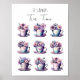 Chique vitoriano vintage china teacups e flores vintage em rosa, roxo e azul.