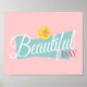 Este sinal de poster retrô será a adição perfeita à decoração da sua casa. Esta placa apresenta formas azuis e amarelas inspiradas retroativamente com as palavras "É um Dia Bonito" numa combinação de cor-de-rosa e branco.