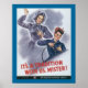 Vintage americana patriótica homefront motivacional poster da Segunda Guerra Mundial, equiparando "Rosie the Riveter" trabalhadoras com mulheres coloniais preparadas para lutar.