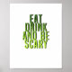Eat Drink And Be Scary Funny Quote: A witty Halloween quote design full of humor and fun. Ideal for relaxed festive looks. Clever, bright, and engaging.