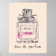 Eau de parfum slogan francês de perfume com uma ilustração de moda de uma obra de arte original do artista Sacha Grossel de uma garrafa de perfume rosa de perfume de safena. Esta ilustração aquarela de um perfume de marca de luxo está no estilo de pop e a cor de fundo é personalizável.
