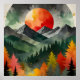 Uma paisagem aquática mesmerizante, com montanhas em direção ao alto, florestas de outono exuberantes e um sol celeste brilhante. A rica mistura de verduras profundas, laranjas ferozes, e matizes suaves cria uma cena sonhadora, atmosférica. Perfeito para amantes da natureza e para aqueles que apreciam paisagens místicas e místicas.