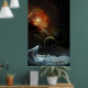 A anos-luz de distância, numa parte distante da galáxia, exploradores intrépidos embarcam numa missão de descoberta numa lua gelada. Seu sistema solar está maduro para exploração e avanço científico, com uma estrela jovem e carregada de nuvens, um mundo de casa aninhado, e muitas luas majestosas. Suas transmissões ao controle de missão ecoarão através das vastas regiões vazias do espaço a uma estrela amarela distante e a um minúsculo ponto azul no vazio. Nota do artista: Canvas ou meios texturizados não recomendados.