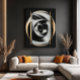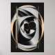 Uma dança de formas geométricas entrelaçadas em curvas e círculos metálicos. A fusão de luz e sombra cria profundidade e movimento, evocando a sensação de um portal abstrato que ressoa com equilíbrio, mistério e sofisticação atemporal.