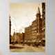Este c. Fotografia de 1900 é uma vista olhando para o norte na rua State do outro lado do cruzamento Four Corners. O centro de Rochester era formado por cavalo, carrinho, pedestre e tráfego de bicicletas. O Edifício Elwood, que é uma torre de gárgula alta, está à direita. Rochester NY