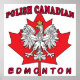 Mostre seu orgulho polonês na sua cidade natal canadense ou na sua cidade natal ancestral. Esta bela design apresenta uma folha vermelha de bordo da bandeira do Canadá com uma sobreposição de águia branca polonesa e as palavras canadense polonês no topo e Edmonton no fundo.