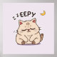 Uma ilustração mostrando uma cena com um gato comicamente exausto, tocando na palavra "SLEEPY", abreviando-a para "EEPY" como se o gato estivesse cansado demais para dizer a palavra do cheio. Mantém um estilo minimalista ao mesmo tempo que foca na expressão e postura humorísticas do gato. O posicionamento central do gato e o simples fundo garantem que o foco permanece no caráter engraçado e sonolento.