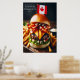 Junte-se à Equipe Eh para um pouco de Mágica Maple Bacon com este hambúrguer canadense desprezível. Um pedaço de carne suculenta é tocado com bacon de vidro crocante, queijo cheddar agudo, e um caldo generoso de maionese, todos empilhados sobre um pão de batata mole. Uma pequena bandeira canadense adiciona um toque patriótico, enquanto um lado da pintura completa esta obra-prima culinária canadense.