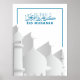 Esta design é adequada para felicitar amigos e família pelo Eid A Mesquita Islâmica é pintada de forma única com fundo branco e quadro azul. A frase "Eid Mubarak" é completamente editável.
