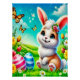 Ostern im Frühlingsgarten sitzt ein Hase und freut über seine Ostereier, die er verschenken möchte!