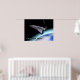Para futuros astronautas judeus. Uma renderização digital de uma nave espacial El Al (icônica transportadora aérea nacional de Israel) entrando em órbita. A Terra é vista abaixo; uma estação espacial flutua à distância. Adicione seu próprio texto. Estude duro e b'hatzlacha!