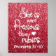 Ela é mais precioso do que rubis em escrita branca com um motivo cardíaco em branco, sobre um fundo brilhante de cor vermelha falsa. É baseado no Proverbs 31:10. Você é uma joia precioso! Seria um belo presente para um amigo ou membro da família.