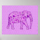 Imagens digitais mistas de um elefante contra fundo arabesco tiled - tons de lavanda, orquídea e roxo ametista