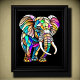 Este elefante muito colorido é um estilo aquoso de vidro colorido sobre fundo preto. A proporção largura/altura é 4:5. Ele foi projetado para ser impresso como 4"×5", 8"x10" ou 16"×20", 24"×30"