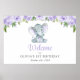 Poster Elefante, Flores Roxas, Primeiro Aniversário Bem-V
