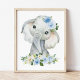 Adicione os retoques finais ao berçário do seu bebê ou ao quarto do seu filho com estas impressões de arte lindas! Design apresenta elefante, flores azuis de aquarela e verde.