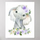Poster Elefante, Safari, Flores Roxas, Neutro em Gênero