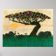 Aviões de África I de Alonzo Saunders. A beleza da natureza é capturada nesta trabalho de arte, que mostra o sol se posicionando lentamente à medida que elefantes passam uma árvore colorida nos aviões africanos. | 132934GG