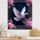 Poster Elegância Da Pomba Branca Com Rosas Rosa
