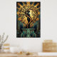 Add a touch of 1920s glamour to your home with this stunning Art Deco illustration. Featuring a sophisticated black silhouette of a woman intertwined with a tree, set against a radiant gold sunburst and deep teal geometric patterns. This elegant piece blends nature with architectural design, making it perfect for modern or vintage-inspired interiors.