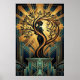 Poster Elegant Art Deco Woman Tree Silhouette Black Gold