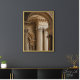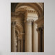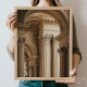 This poster captures the timeless elegance of classical architecture through a richly detailed portrayal of Corinthian columns. The fluted shafts rise with monumental grace, crowned by intricate capitals adorned with acanthus leaves and volutes. Overhead, a series of stone arches and decorative cornices frame the perspective, drawing the eye down a rhythmic procession of pillars. The warm sandstone tones and interplay of light and shadow highlight the texture and craftsmanship, evoking a sense of permanence, order, and beauty rooted in ancient Roman and Greek tradition.