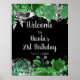 Pretty birthday welcome sign with green flowers and silver foliage. The words can be changed to suit your own details or requirements. Would be perfect for a birthday party.