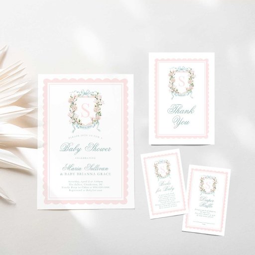 Pink Bow Monogram Floral Crest Baby ShowerCriado por Britt at Helia Design Co.