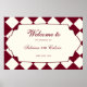 Poster Elegant Retro Checkered Burgundy Wedding Welcome