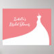 Um elegante vestido de noiva acentua este poster chá de panela num fundo de coral. Esta é parte da Coleção Elegante de Chás de panela em corais. Se forem necessários elementos de coordenação adicionais, entre em contato conosco em prettyfancyinvites@gmail.com com o seu pedido.