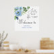 Elegante Algo azul antes que eu faça uma ideia de Chá de panela de sinal de boas-vindas com flores azuis de bebê e verde.