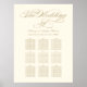 A grandiosa caligrafia tradicional em dourado quente embeleza este elegante quadro de assentos de casamento em um suave fundo marfim. "O Casamento De" é lindamente renderizado em escrita ornamentada acima dos seus nomes e data. O layout estruturado da mesa senta os convidados com facilidade polida. Totalmente personalizável.