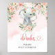 O design de um adorável elefante bebê em aquarela com flores rosa e folhagem de eucalipto, combinado com uma fonte moderna, cria uma estética charmosa e elegante para um cartão de mesa de bebidas de chá de bebê para menina. A paleta de cores suaves e os elementos florais delicados adicionam um toque caprichoso, tornando-o uma adição perfeita para um evento moderno e sofisticado. Essa escolha de design pode ajudar a definir o tom para uma celebração sofisticada e memorável, adicionando um toque especial à decoração geral.