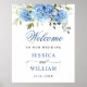 Poster Elegante Blue Hydrangea Eucalyptus Wedding Bem-vin