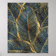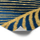 Azul e ouro de luxo modernos, desenho perfeito para decoração exótica em Na moda, eventos de glama únicos e celebrações especiais. Cheio de folhas de brilho de falso brilho dourado com folhas de farelo de brilho design, desenhadas à mão, criando um padrão invulgar de folhagem dourada incrível de trabalho de arte tropical, sobre um filme de luxo de veludo de tendência, sobre um fundo marinho-azul de luxo.