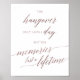 Este elegante pôster de caligrafia em rosa dourado hangover e memórias é perfeito para um casamento simples. O letreiro diz "o porre dura apenas um dia, mas as memórias duram toda a vida". O design rosa bege apresenta um pôster minimalista decorado com tipografia romântica e caprichosa em fólio de ouro rosa falso.