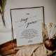 Esta elegante caligrafia negra o sinal do jogo do anel é perfeito para um simples chá de casamento. A design neutra apresenta um sinal minimalista decorado com tipografia romântica e caprichosa.