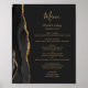 A borda esquerda deste elegante cartão de menu de casamento moderno apresenta uma borda de ágata em aquarela preta aparada com brilho dourado falso. A palavra "Menu" aparece em escrita à mão em cor dourada sobre um fundo preto ardósia. Personalize o texto restante com os nomes do casal, a data do casamento e os detalhes do menu.