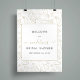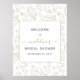 Ouro elegante e poster de boas-vindas de chá de panela branco com desenhos de linha de conchas, tartarugas marinhas e cavalos marinhos. Tipografia de script. Adorável para um casamento sobre o tema do oceano ou do mar. Veja a coordenação de itens no nosso compro, Encantado Finch.