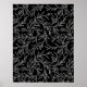 Pôster. Uma coleção requintada em tons pretos e brancos. Ramos elegantes com folhas complementarão a imagem na moda do seu interior