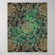Poster Elegante Dourado Mandala Floral Verde Azul