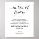 Esta bela placa "em vez de favores" é uma maneira maravilhosa de deixar seus convidados saberem que você fez uma doação para sua caridade favorita em homenagem a eles no dia do seu casamento. Parte da coleção Alejandra. Também disponível em "favores".