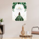 Bem-vindos convidados no estilo elegante com este cartaz de poster da esmeralda verde quinceañera com sotaques de folha de ouro. Projetado com uma coroa real, borboletas, e rosas esmeraldas, este cartaz combina maravilhosamente com o convite da quinceañera, o cartões de agradecimentos e as etiquetas favoritas. Perfeito para exibir na entrada do seu local, este sinal de boas-vindas, que chama atenção, dá o tom para uma glamourosa e inesquecível celebração de quinze doces.