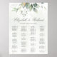 Linda placa alfabética de assentos de casamento, com cor d'água eucalipto e folhas de ouro.