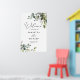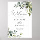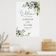 Projetado para coordenar com a nossa coleção de casamento Boho Greenery, esta modelo de sinal de boas-vindas personalizável na orientação paisagística apresenta a cor aquática eucalipto & folhagem de folhas e foi emparelhada com uma elegante caligrafia e uma fonte serif clássica em preto. Para fazer alterações avançadas, selecione a opção "Clique para personalizar mais" em Personalizar este modelo.