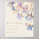 Esta elegante poster de boas-vindas é perfeita para casamentos de primavera e verão. Este design apresenta íris de aquarela em tons de lilás e de azul-piscadela. Toques sutis de ouro acrescentam um elemento mágico e brilhante.